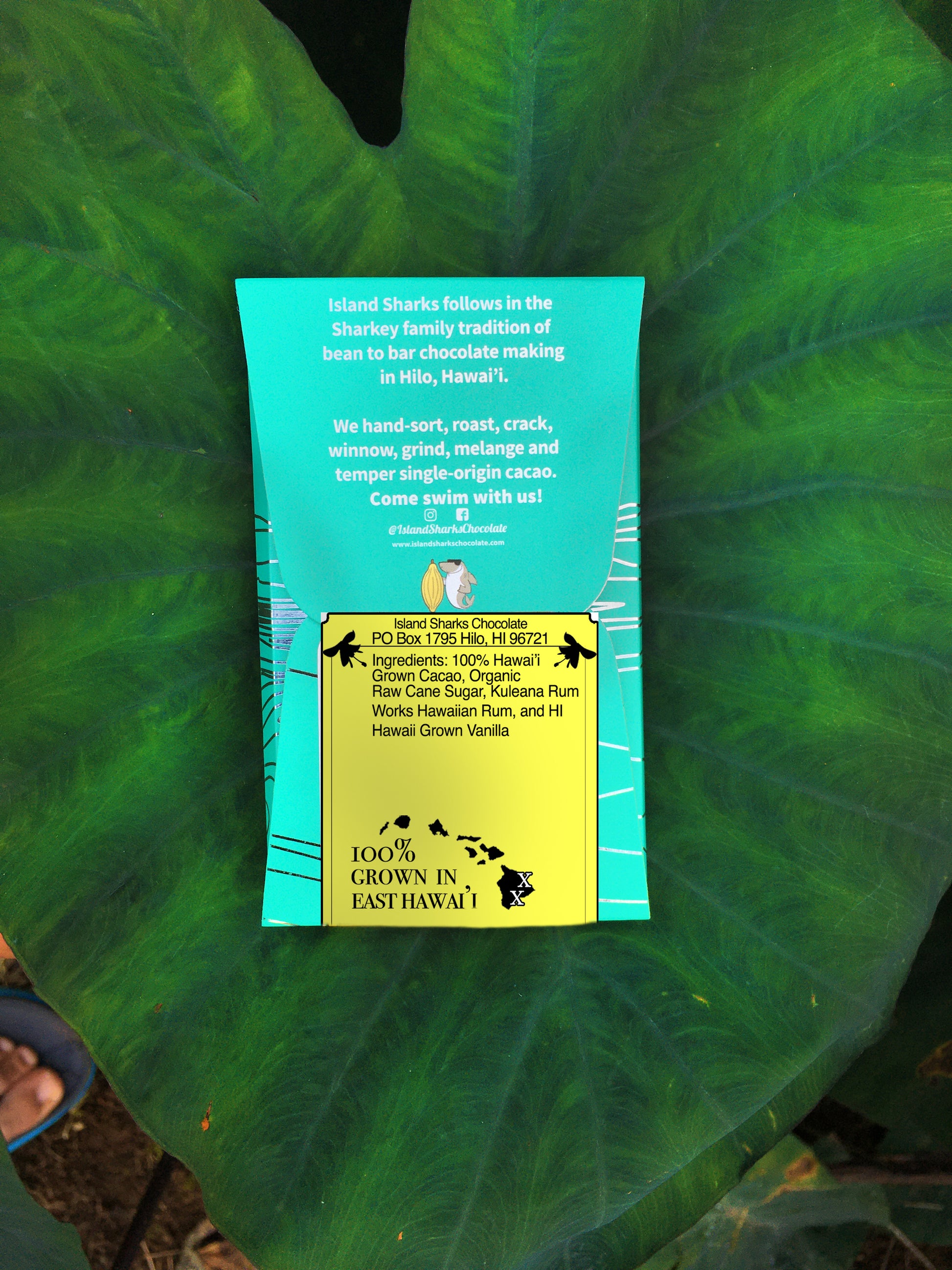 Our Hawai'i cacao is grown along the beautiful slopes of Mauna Kea on the Big Island of Hawai'i. And our chocolate, is made just down the road. Island Sharks Chocolate support's Hawaii's local farmers, like our forebear, Tom Sharkey. By purchasing Hawai'i cacao beans at an industry premium we create livable wages for our community.Vegan, Gluten & Soy - Free. Non-Gmo. Single-Origin. Aloha.