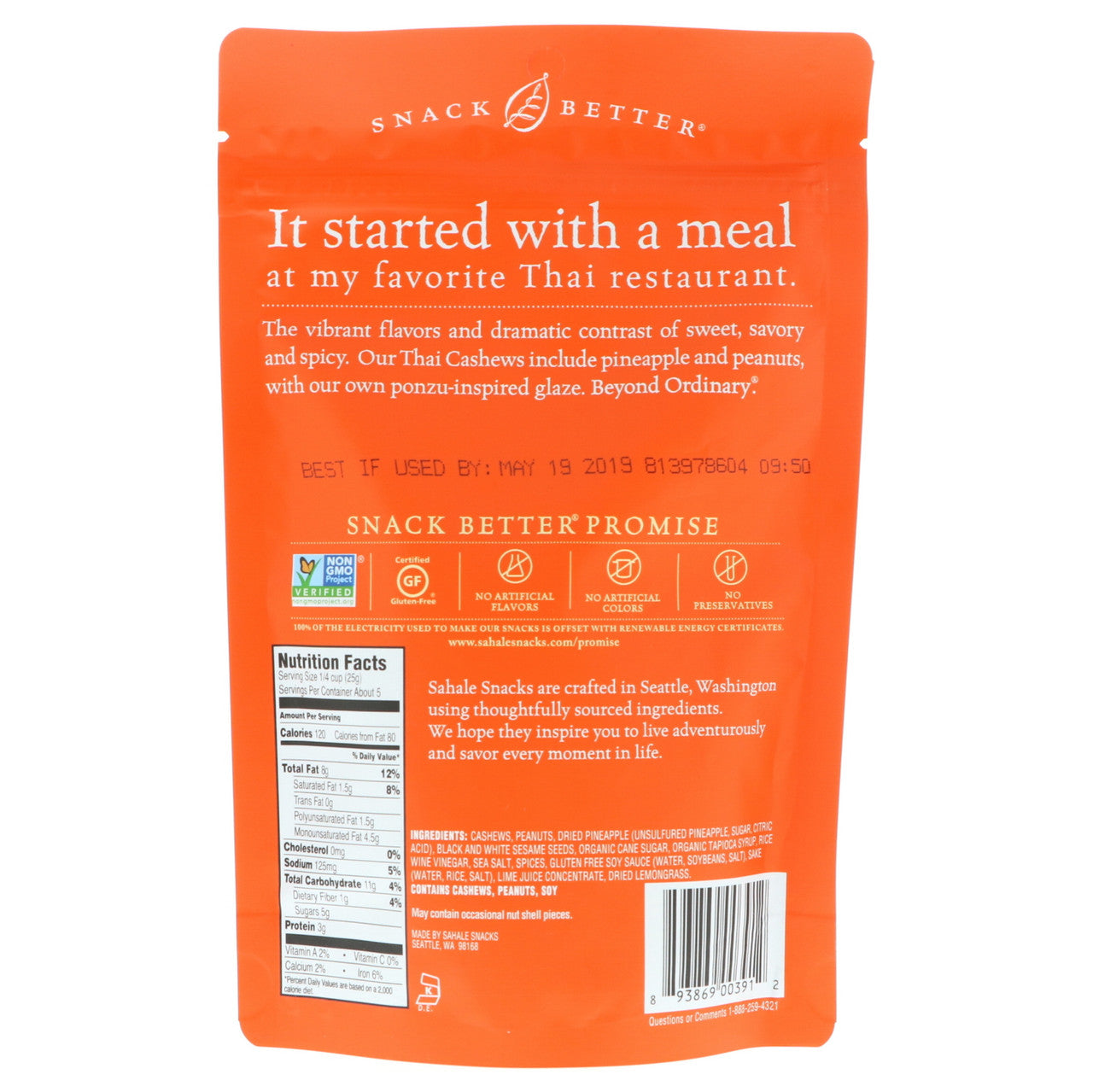Sahale Thai Cashews (Pack of 6 - 4 oz)